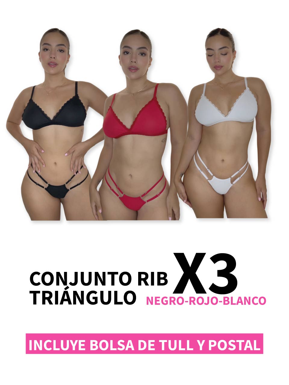 💗Incluye 1 conjunto rib triangulo blanco + 1 conjunto rib triangulo rojo + 1 conjunto rib triangulo negro